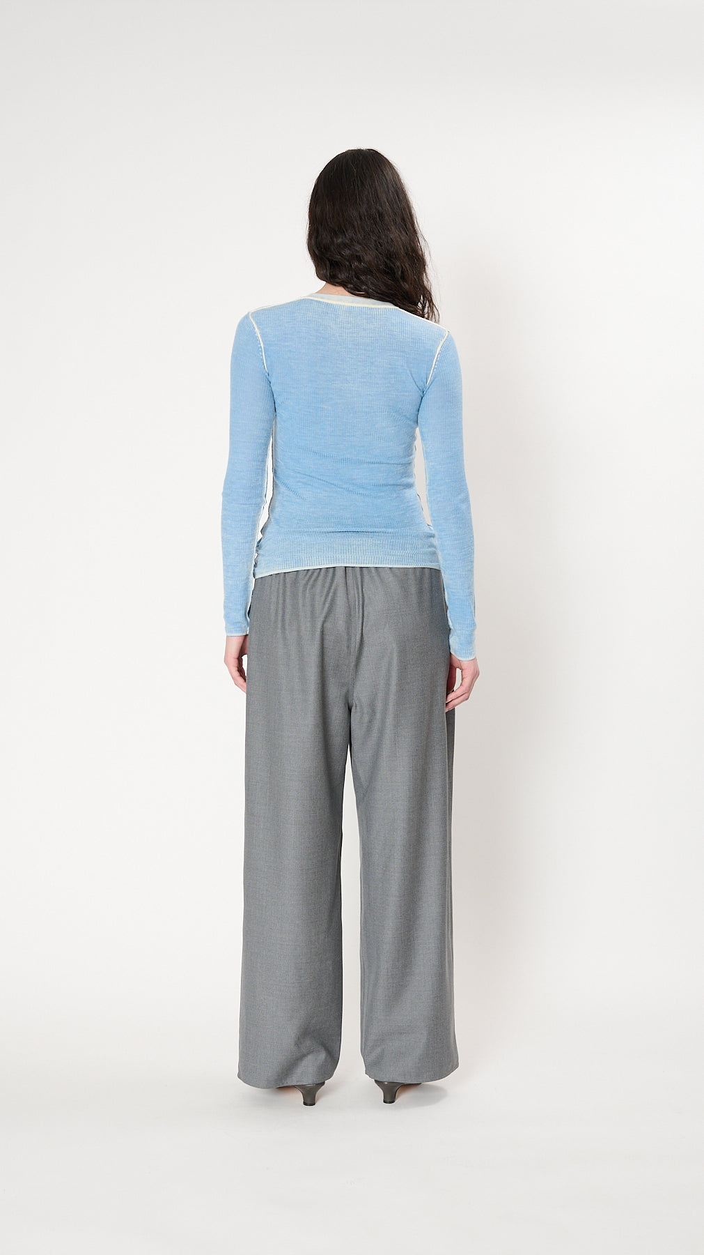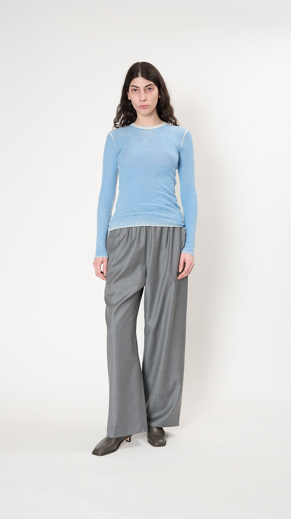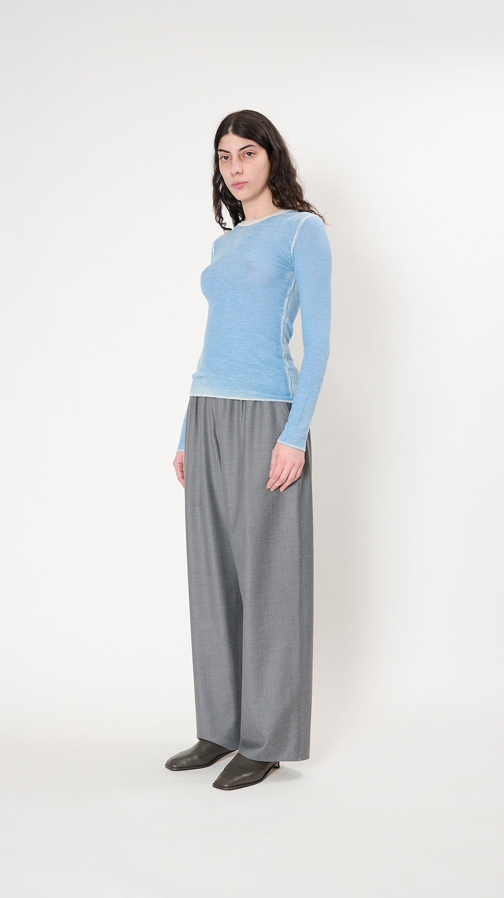 The Printed Long Sleeve Crew has a slim silhouette made of gauzy, ultrafine merino. It features a ribbed knit that is printed with color after knitting, inside-out seams, and a rib trim neckline.
