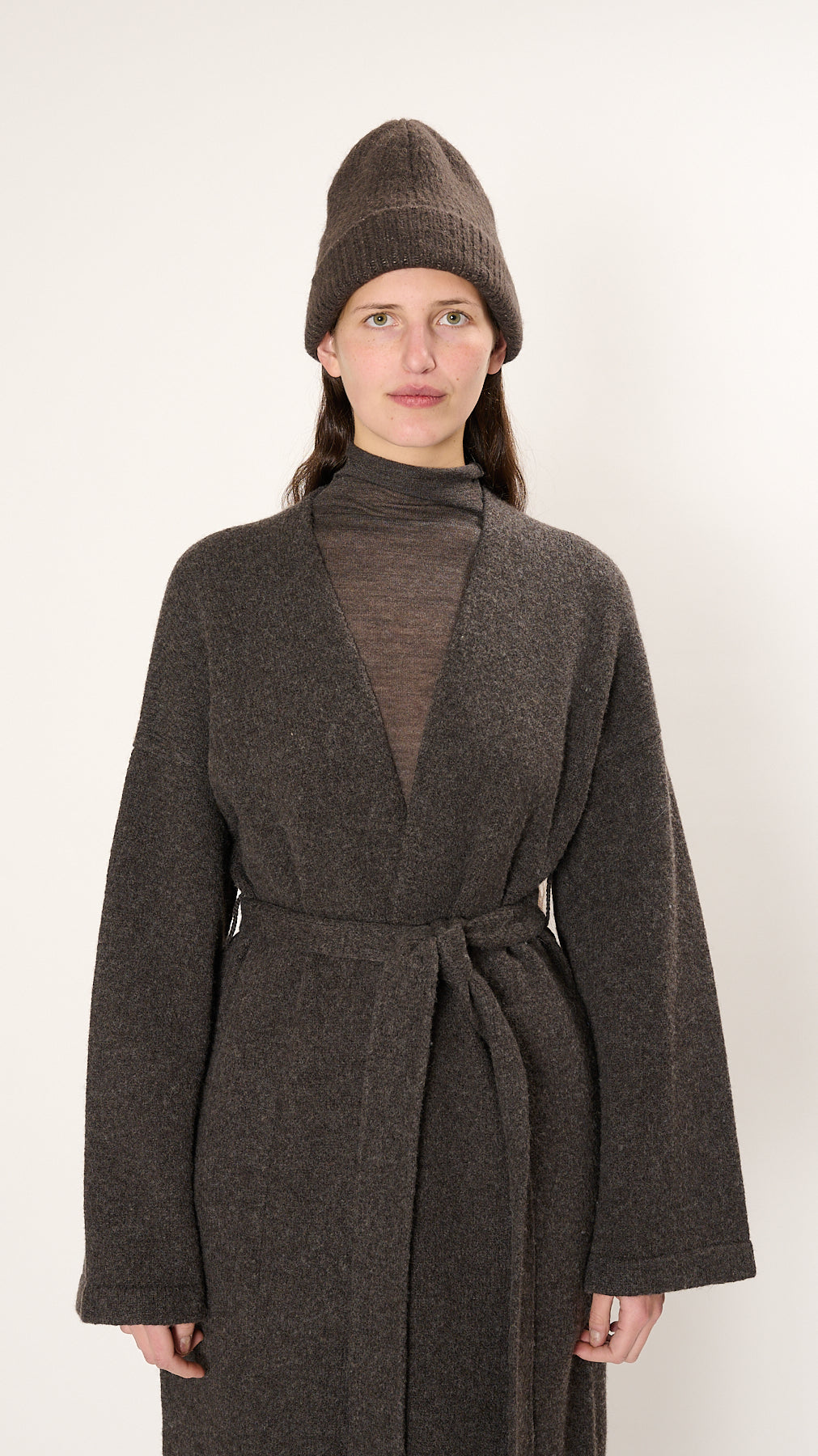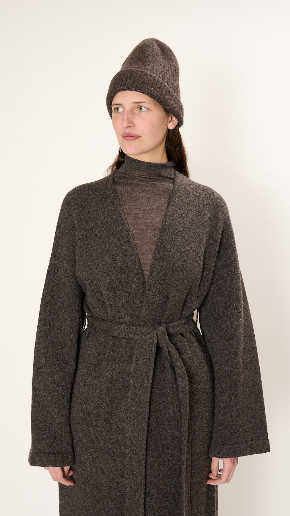 The Loft Rib Beanie is made of a soft, handloomed suri alpaca-blend. It has a ribbed knit and a folded brim.