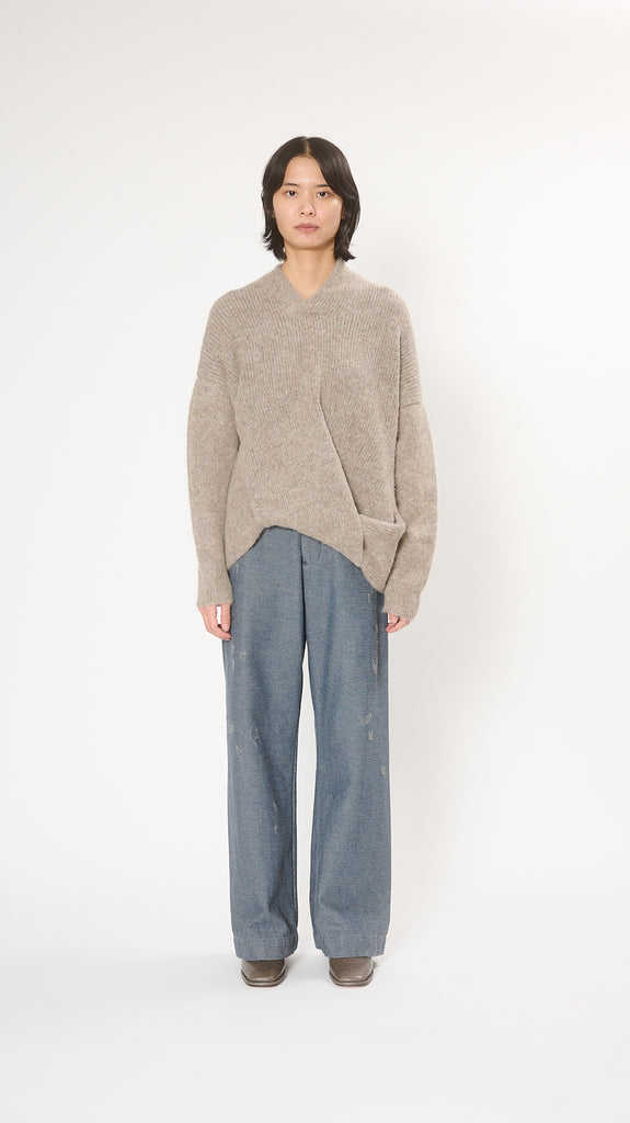 Trompe L'oeil Crewneck Jumper in Dark Cacao
