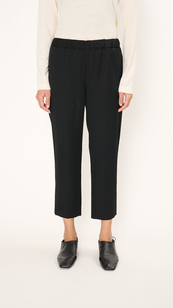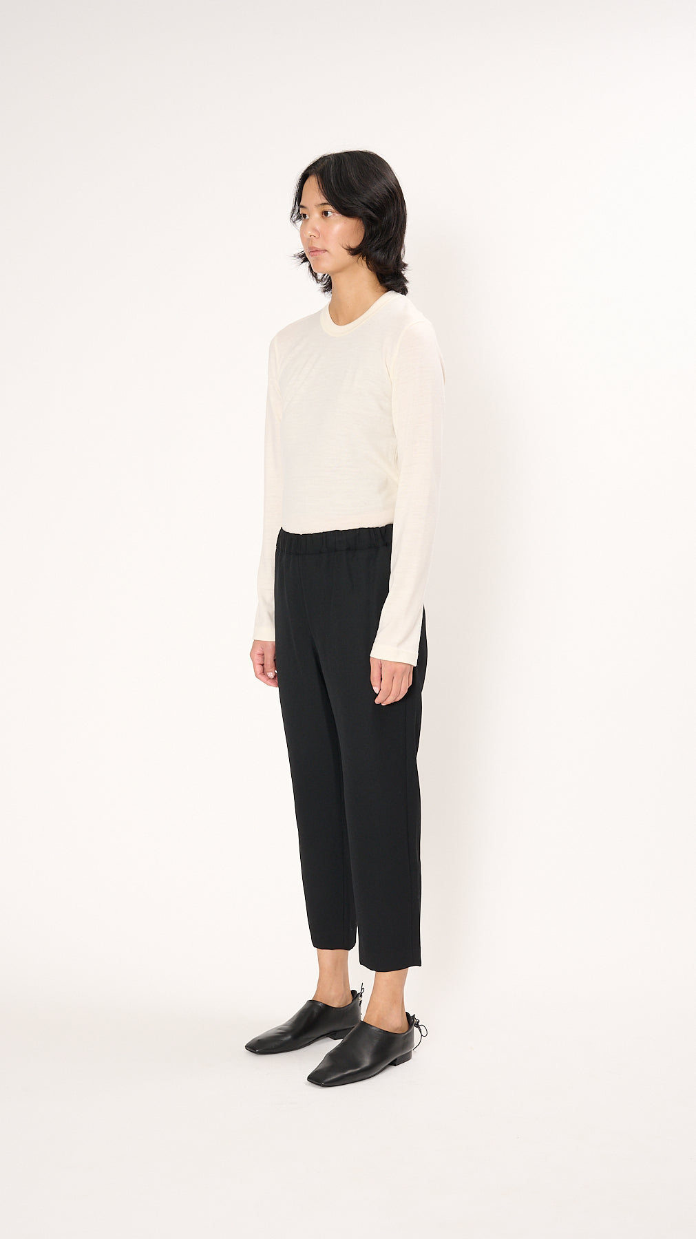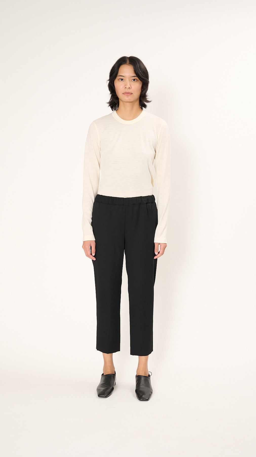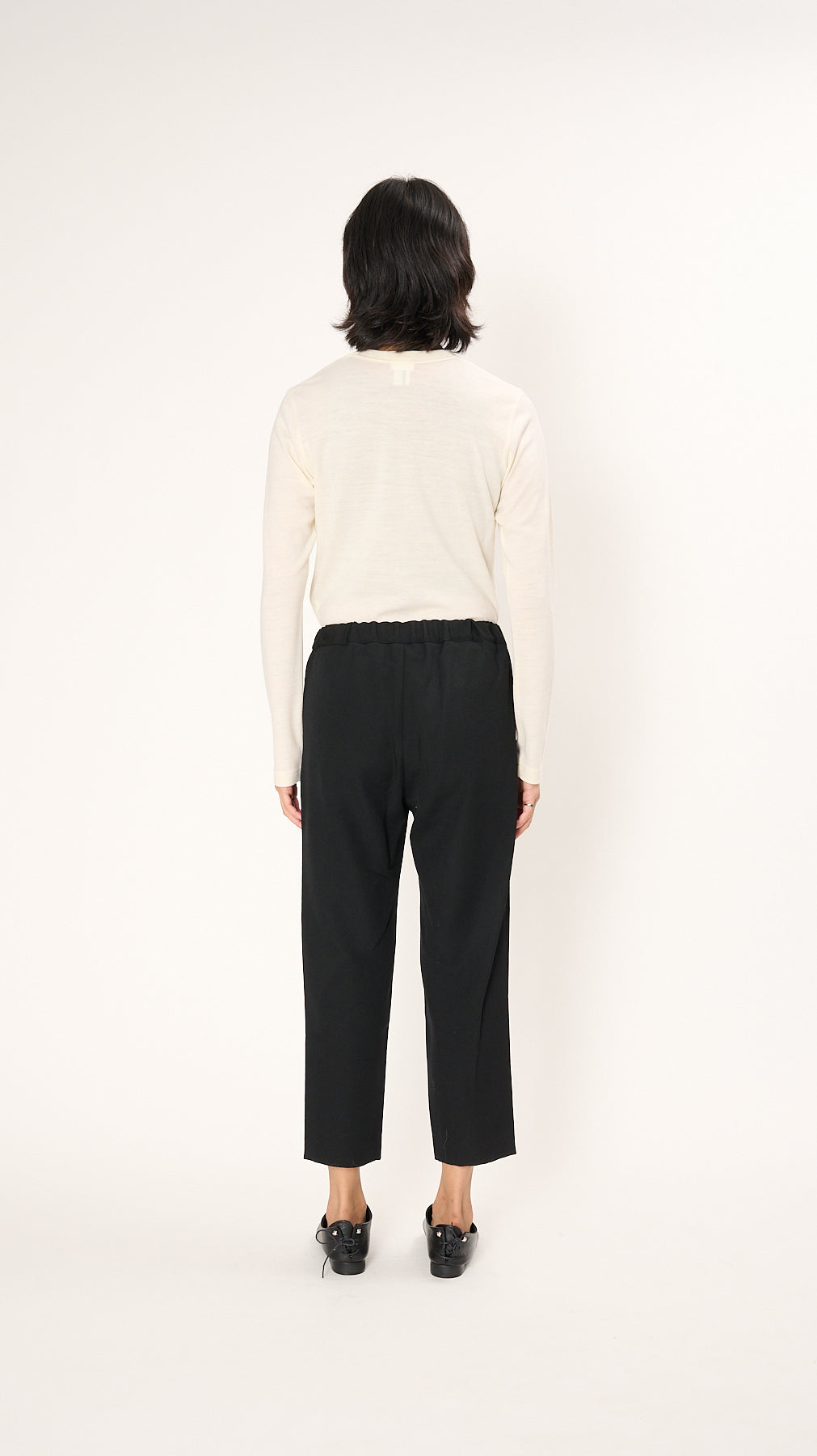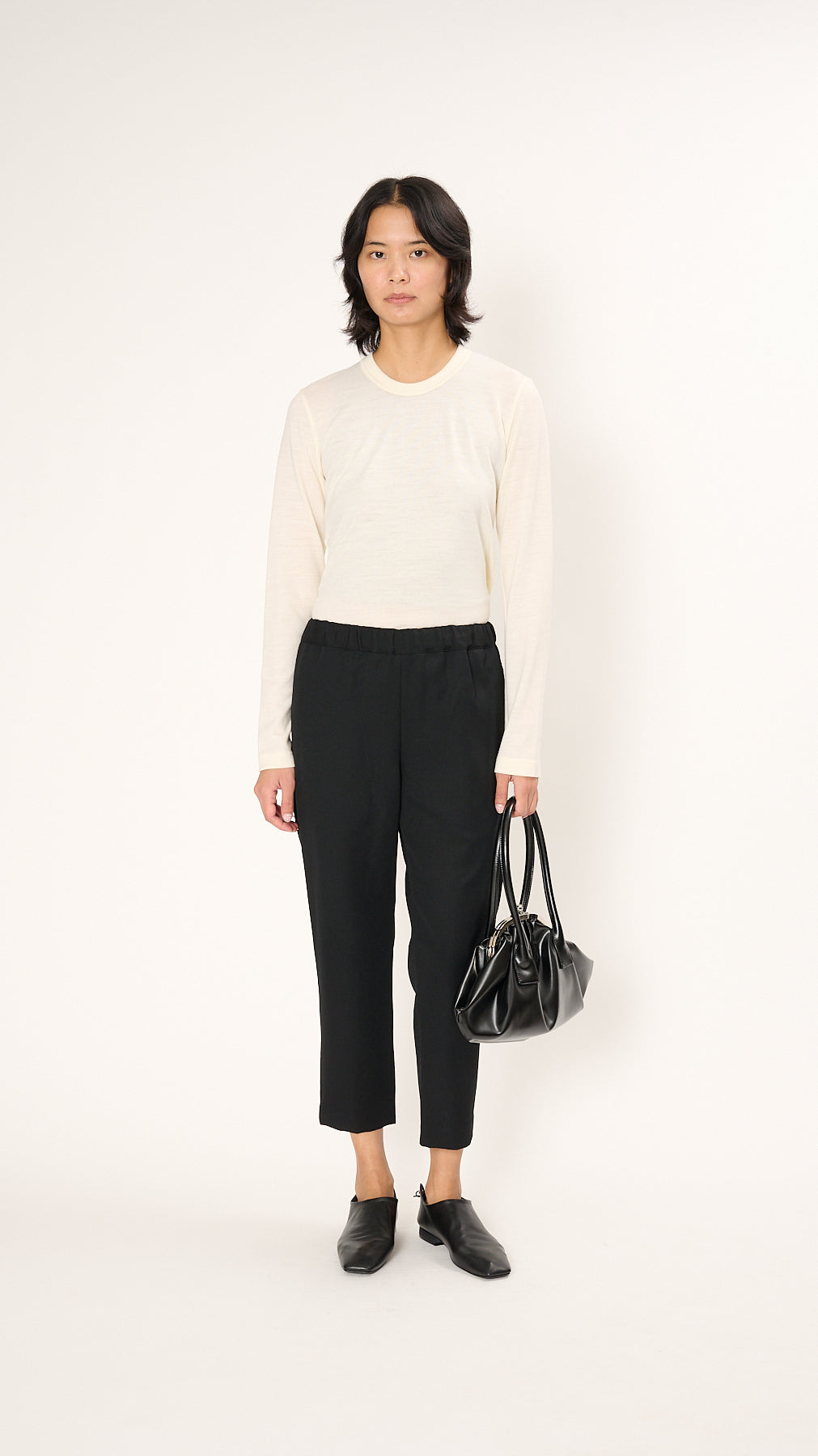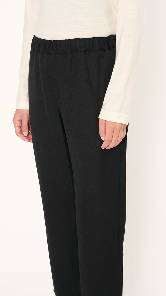 The Elastic Wool Trousers have a straight leg silhouette made of fine wool and are finished with an elasticized waistband.