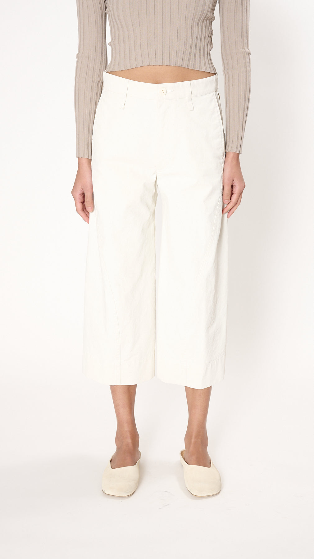 The Pigment Dyed Pants have a baggy, cropped silhouette made from a coated cotton that soften with wear. They feature a button zip fly, belt loops, side pockets, and patch back pockets.