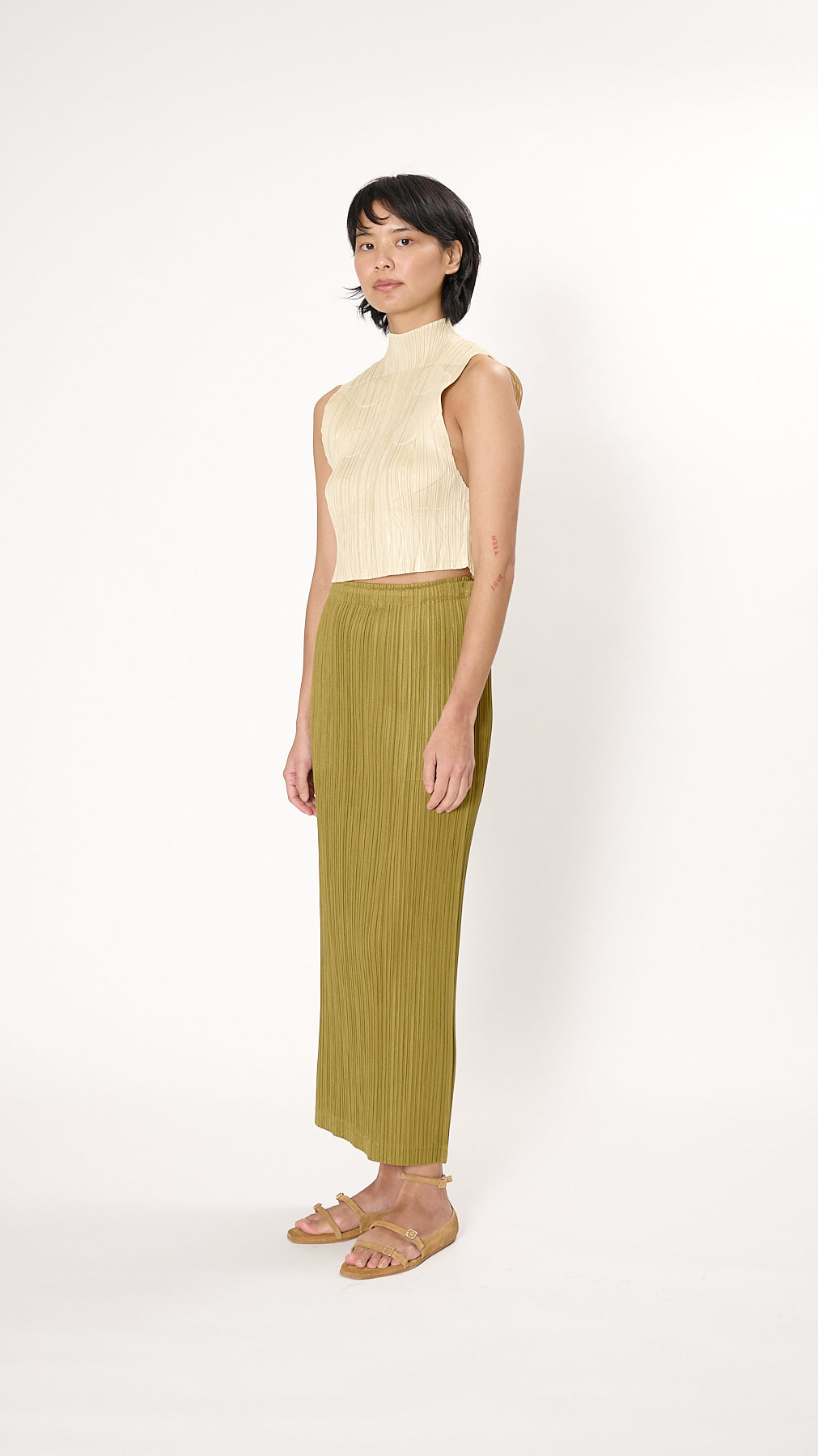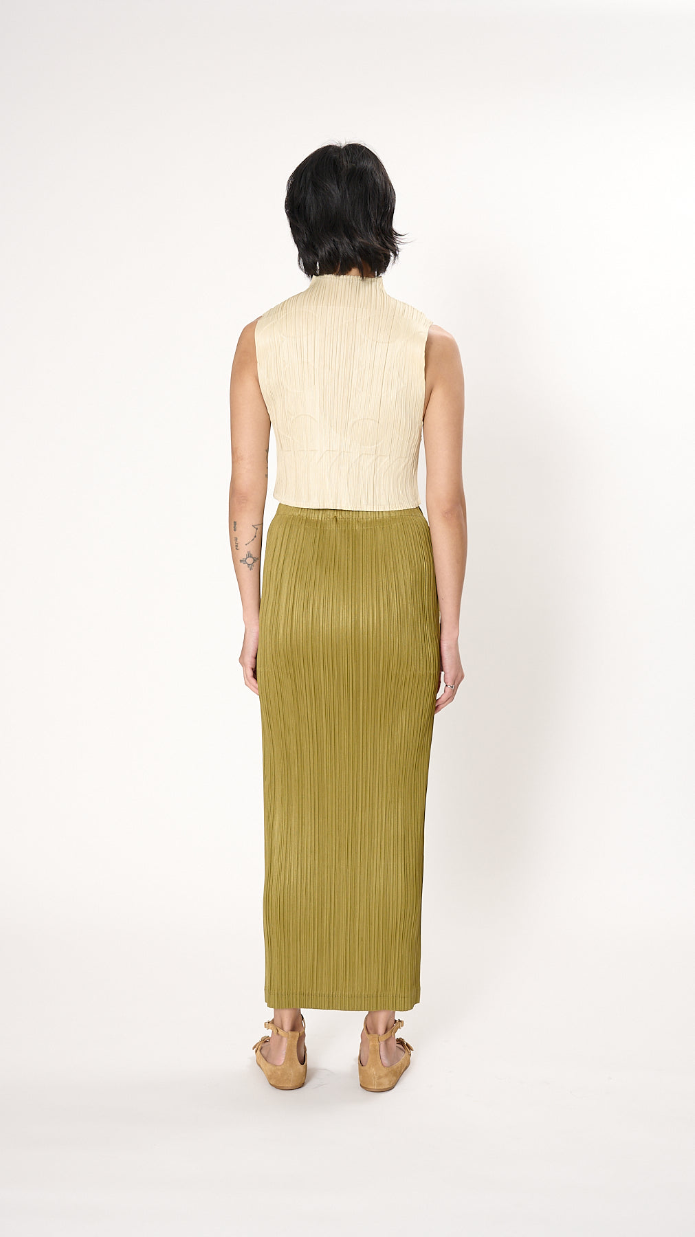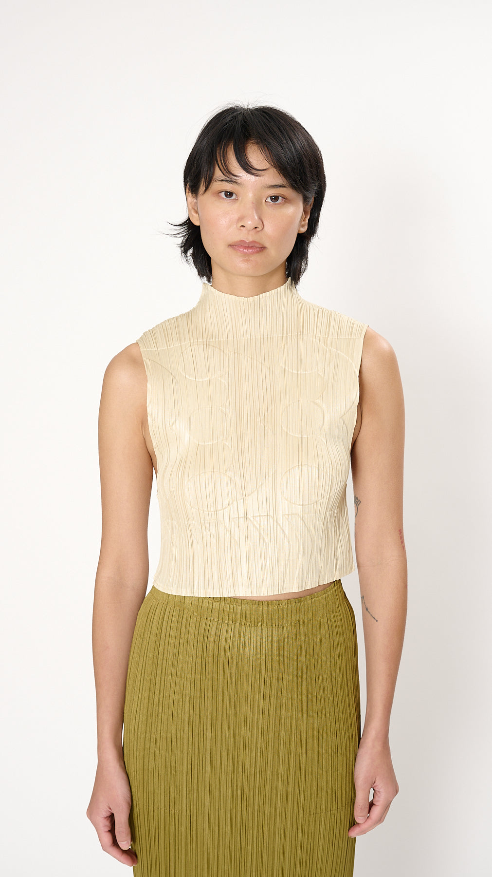 Issey Miyake Pleats Please Tune Top in Ivory