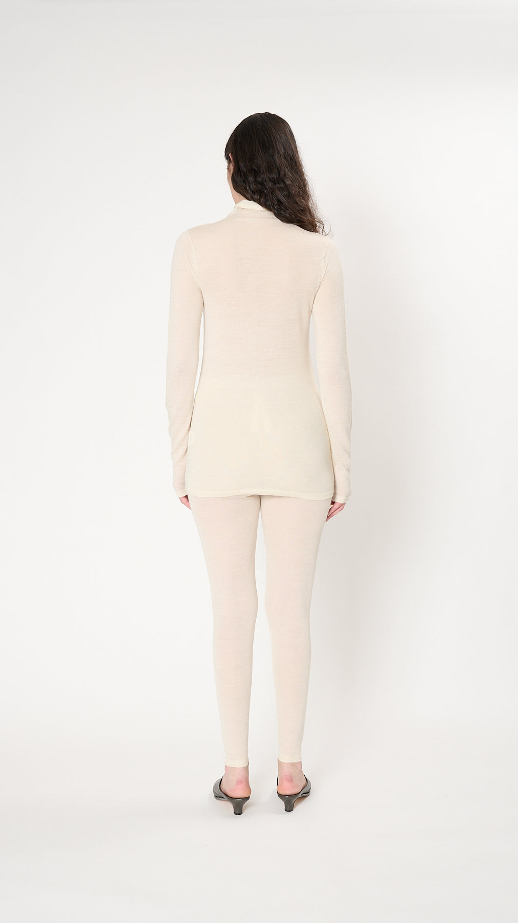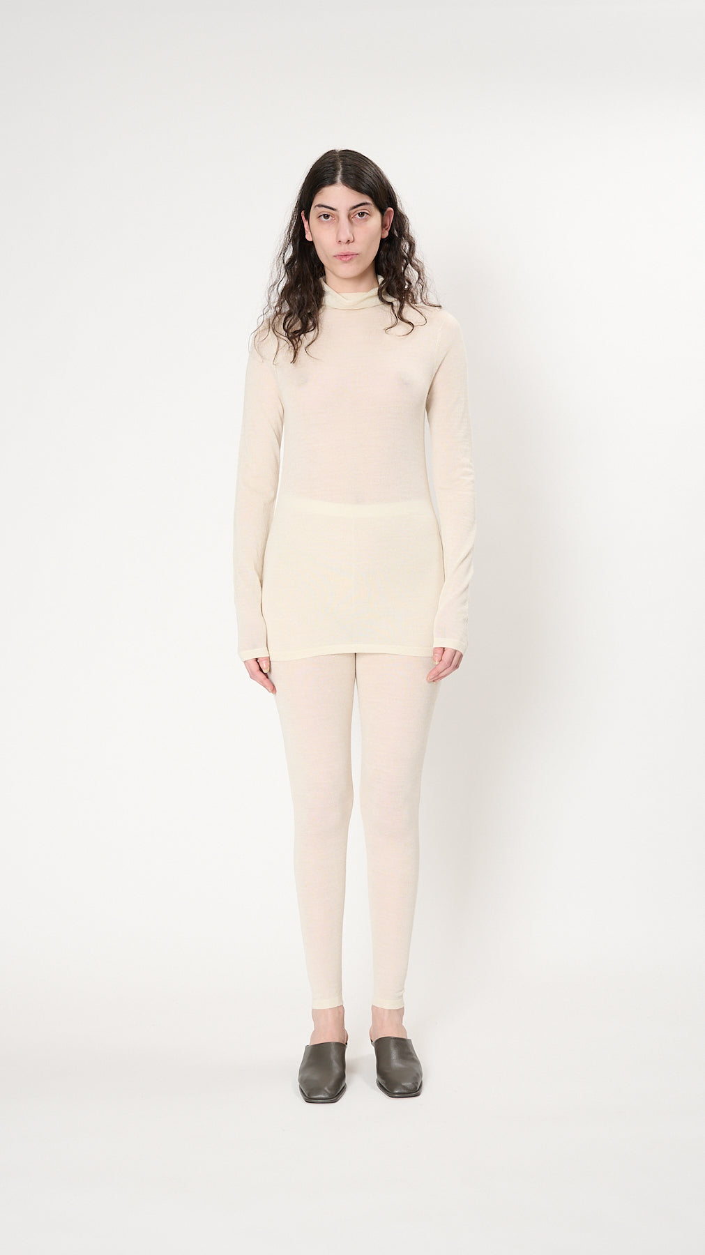 The Super Fine Leggings have a slim silhouette with an elastic waistband and are knit of fine high-gauge alpaca-silk-merino blend yarn.