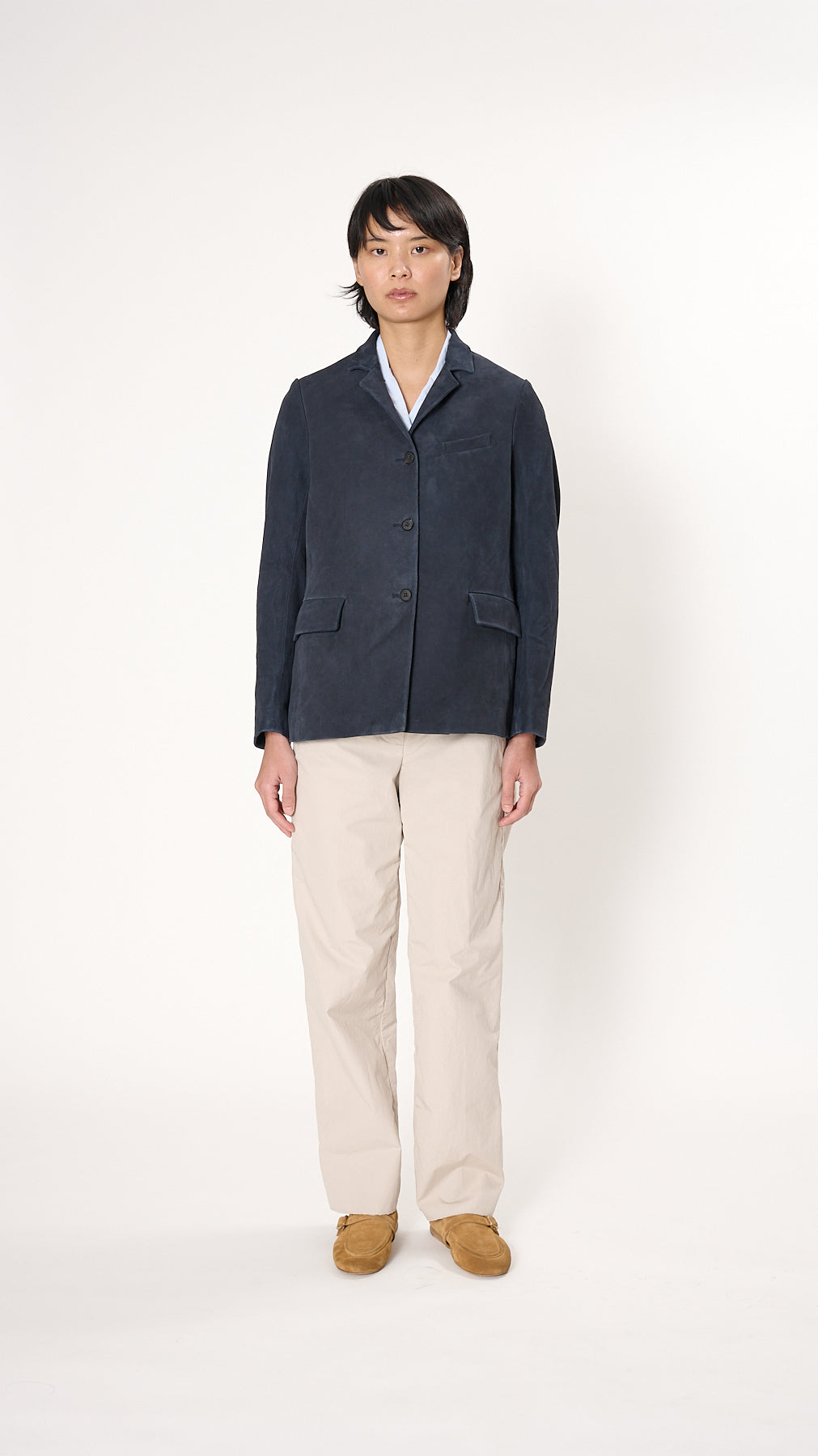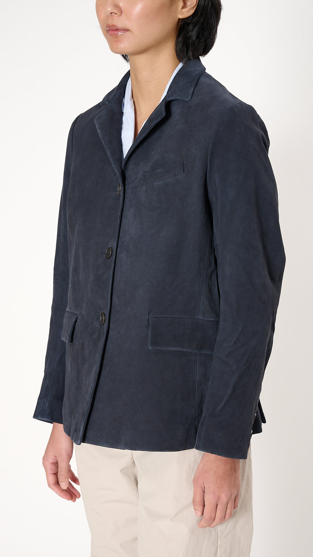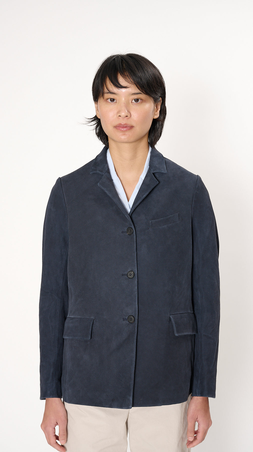 The Leather Giulia Jacket has a straight silhouette made of soft nappa leather and is lined with Bergfabel's signature cotton. It features a notch collar, a 3-button front, and flap front pockets.