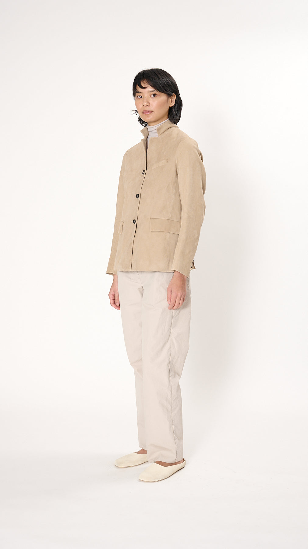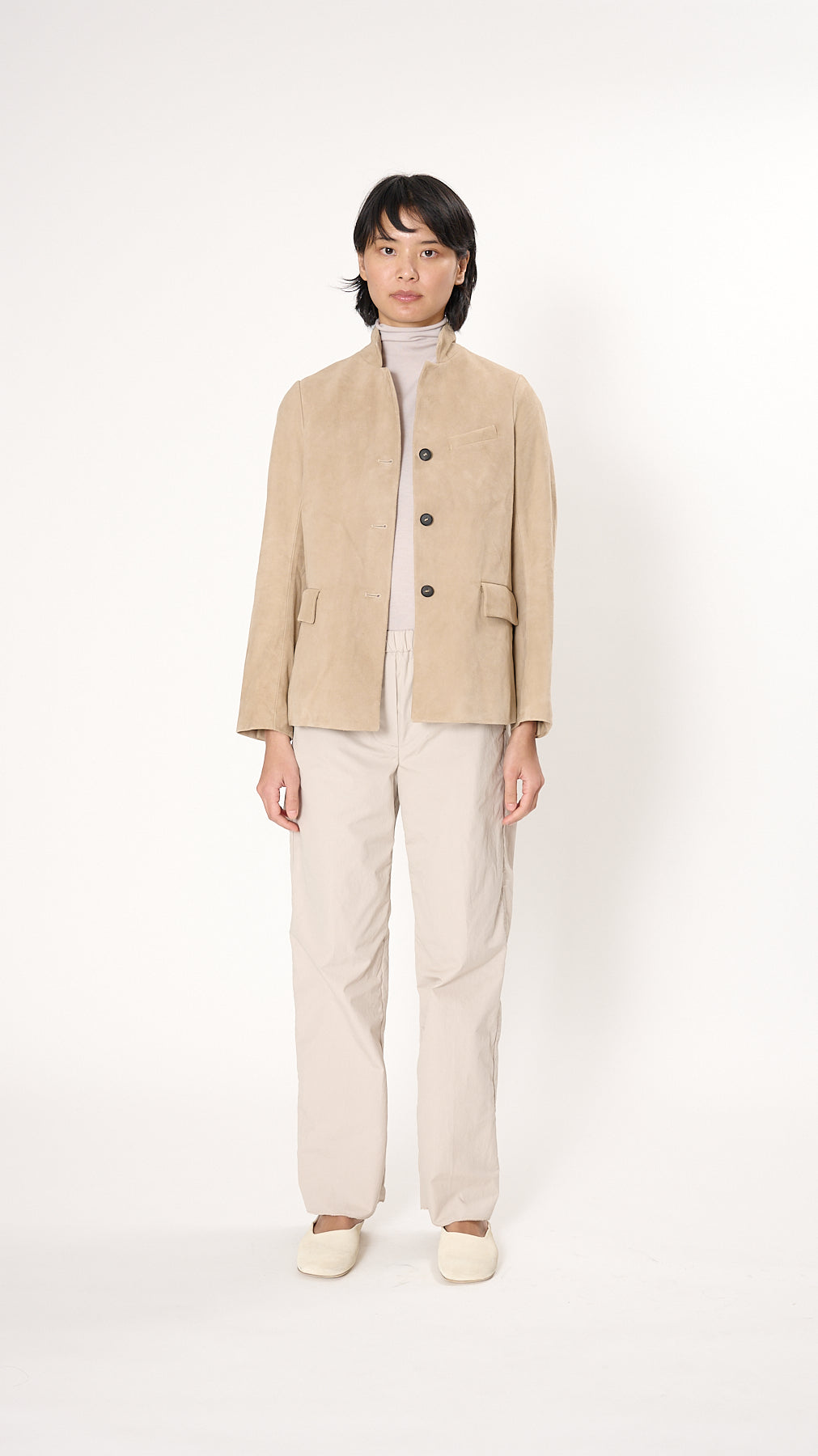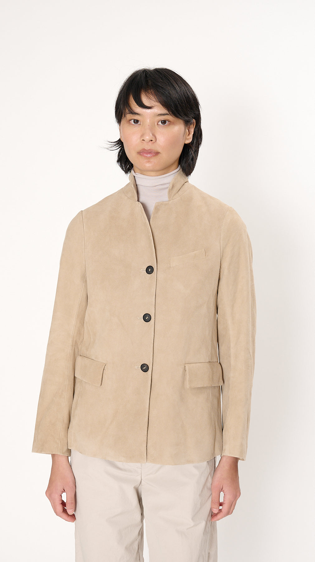 The Leather Giulia Jacket has a straight silhouette made of soft leather and is lined with Bergfabel's signature cotton. It features a notch collar, a 3-button front, and flap front pockets.