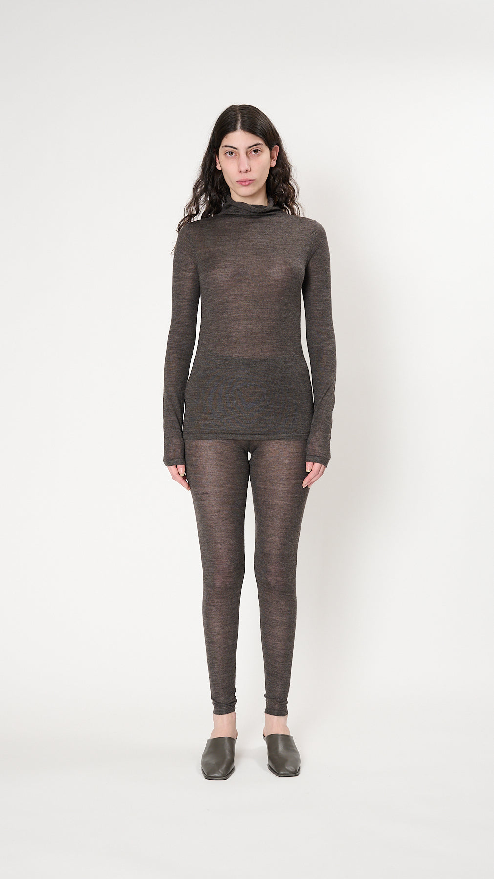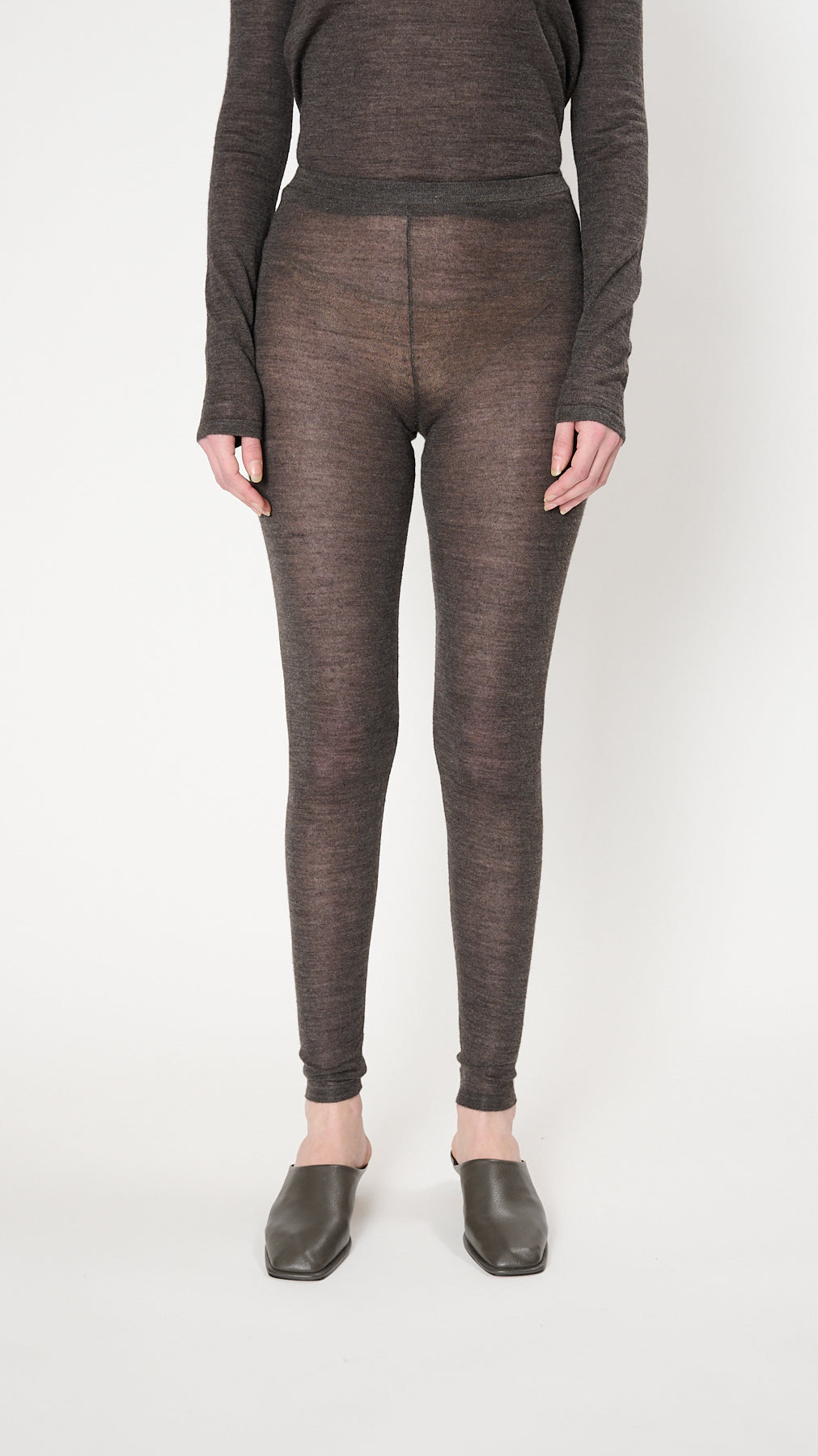 The Super Fine Leggings have a slim silhouette with an elastic waistband and are knit of fine high-gauge alpaca-silk-merino blend yarn.
