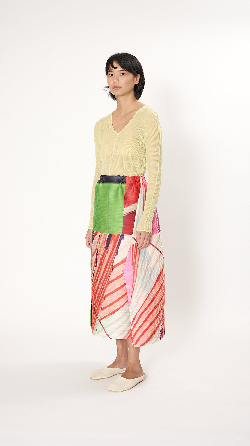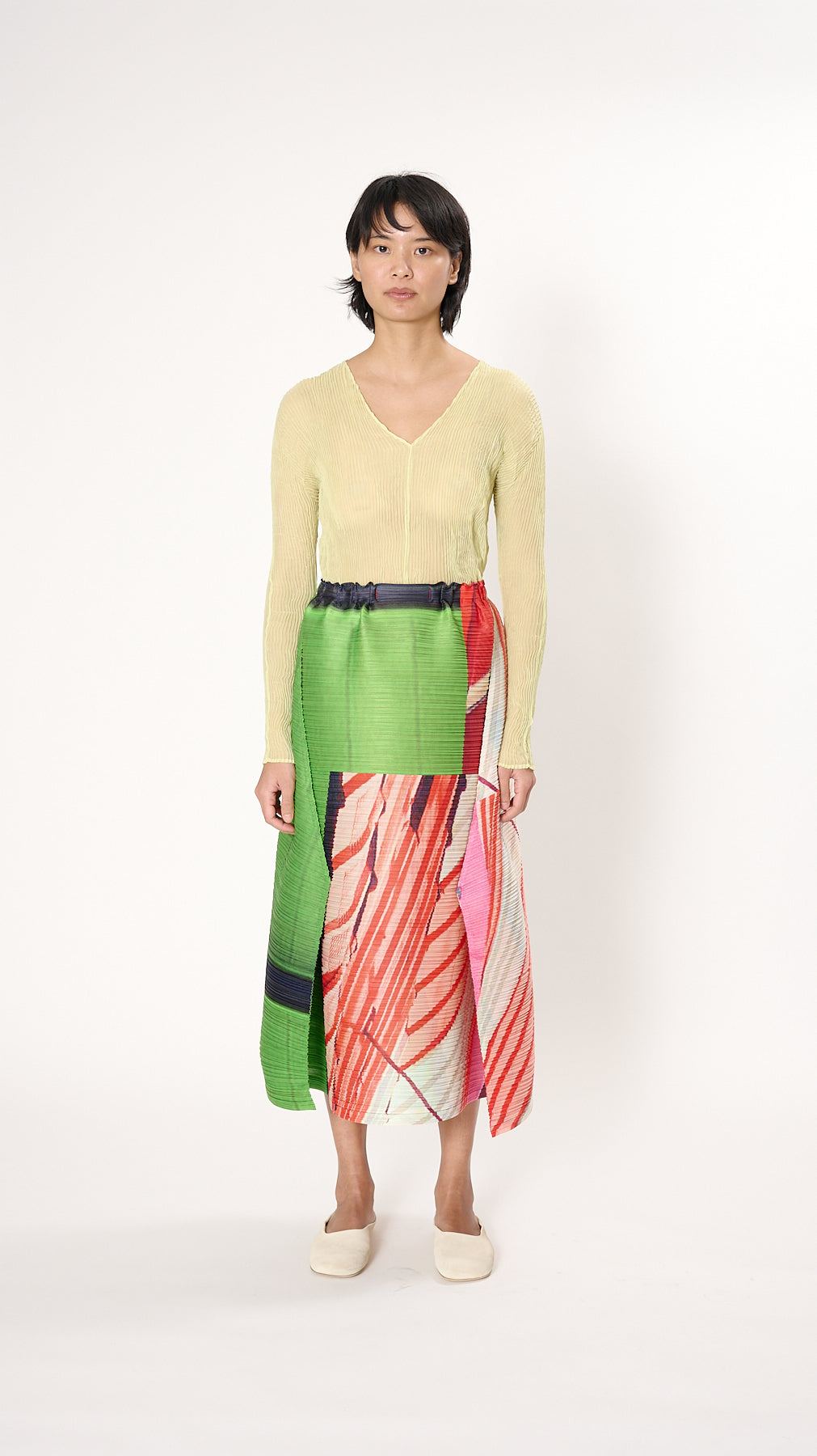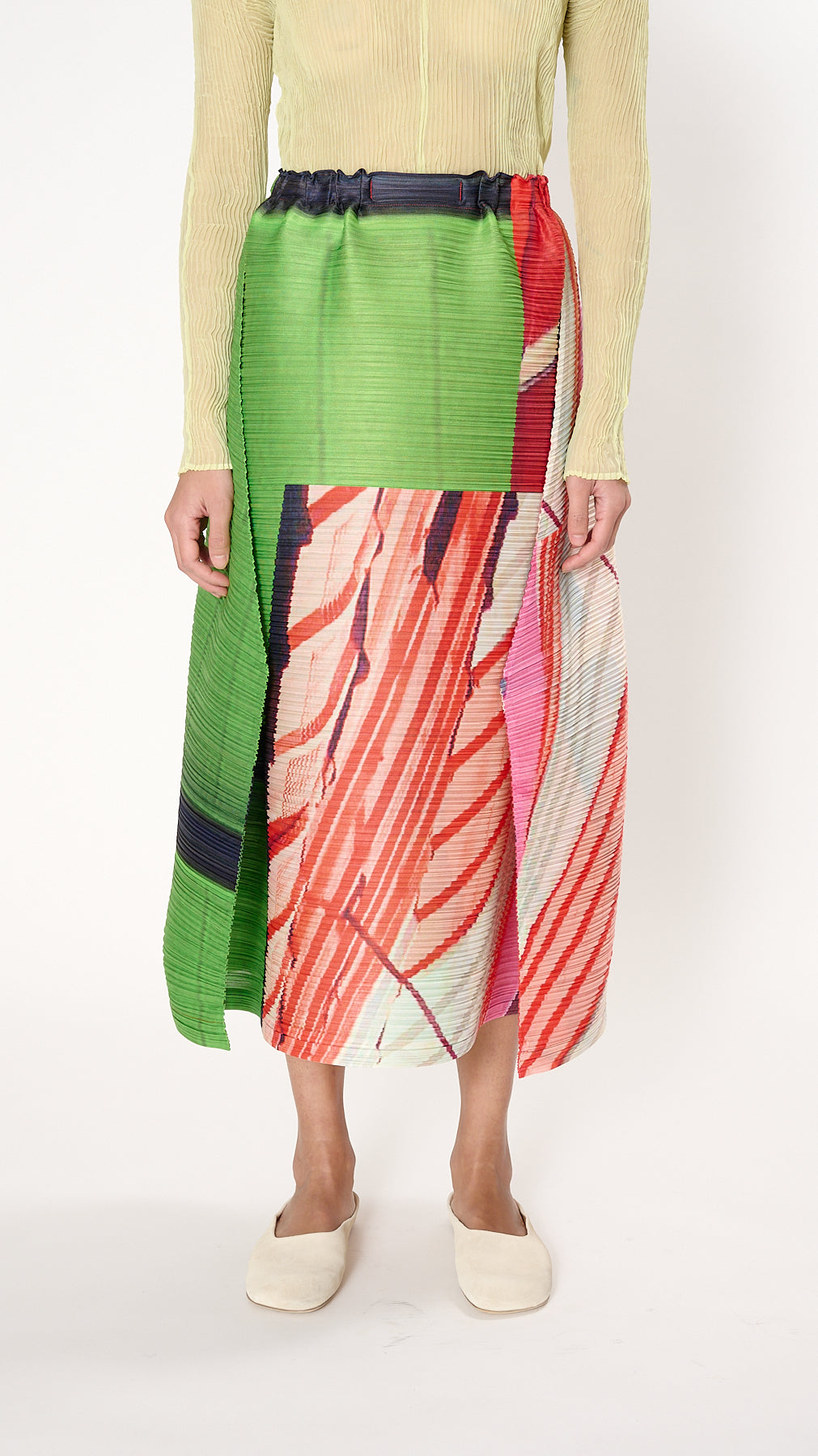 Issey Miyake Pleats Please City Collage Skirt in Red x Green