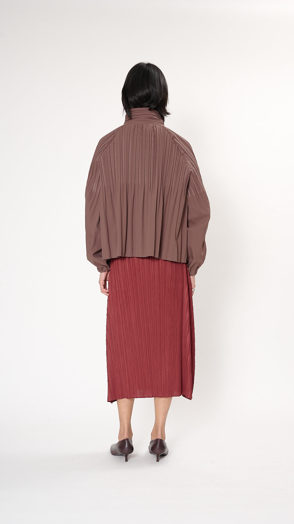 Issey Miyake Pleats Please Smooth Coat in Brown