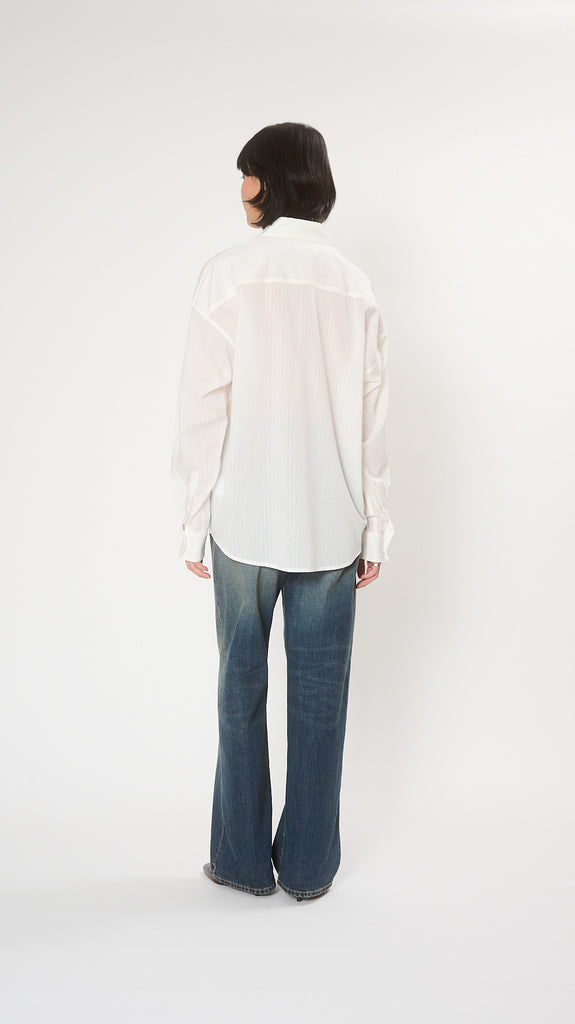 6397 Ribbon Stripe Uniform Shirt in White Stripe