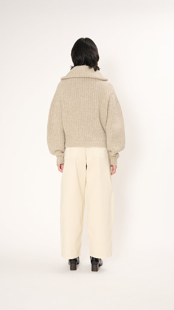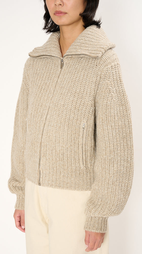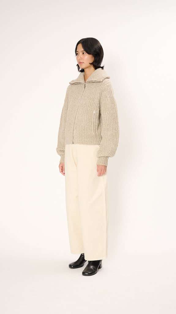 Zipped Cardigan in Beige Oat