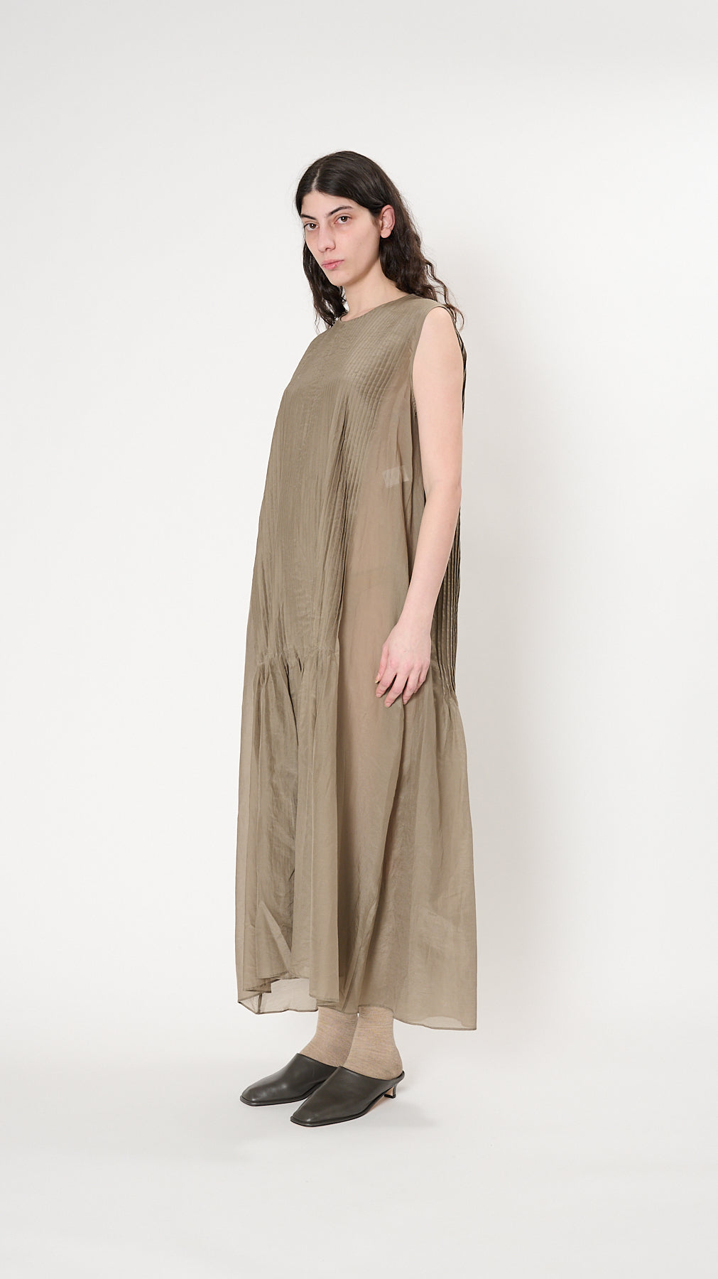 Lauren Manoogian Sheer Pleat Dress in Clay