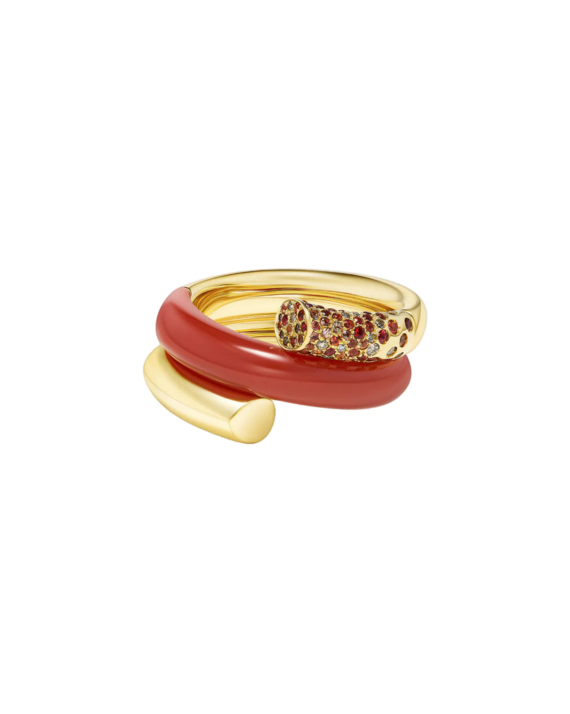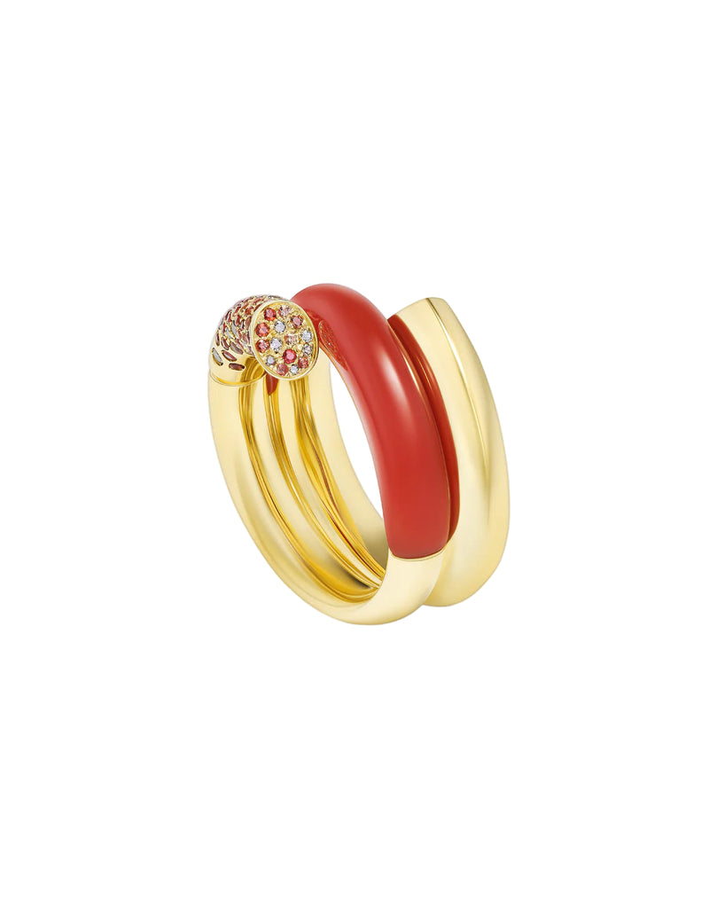 Tabayer Oera Coil Ring in 18k Yellow Gold and Carnelian