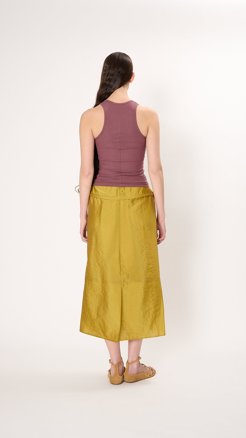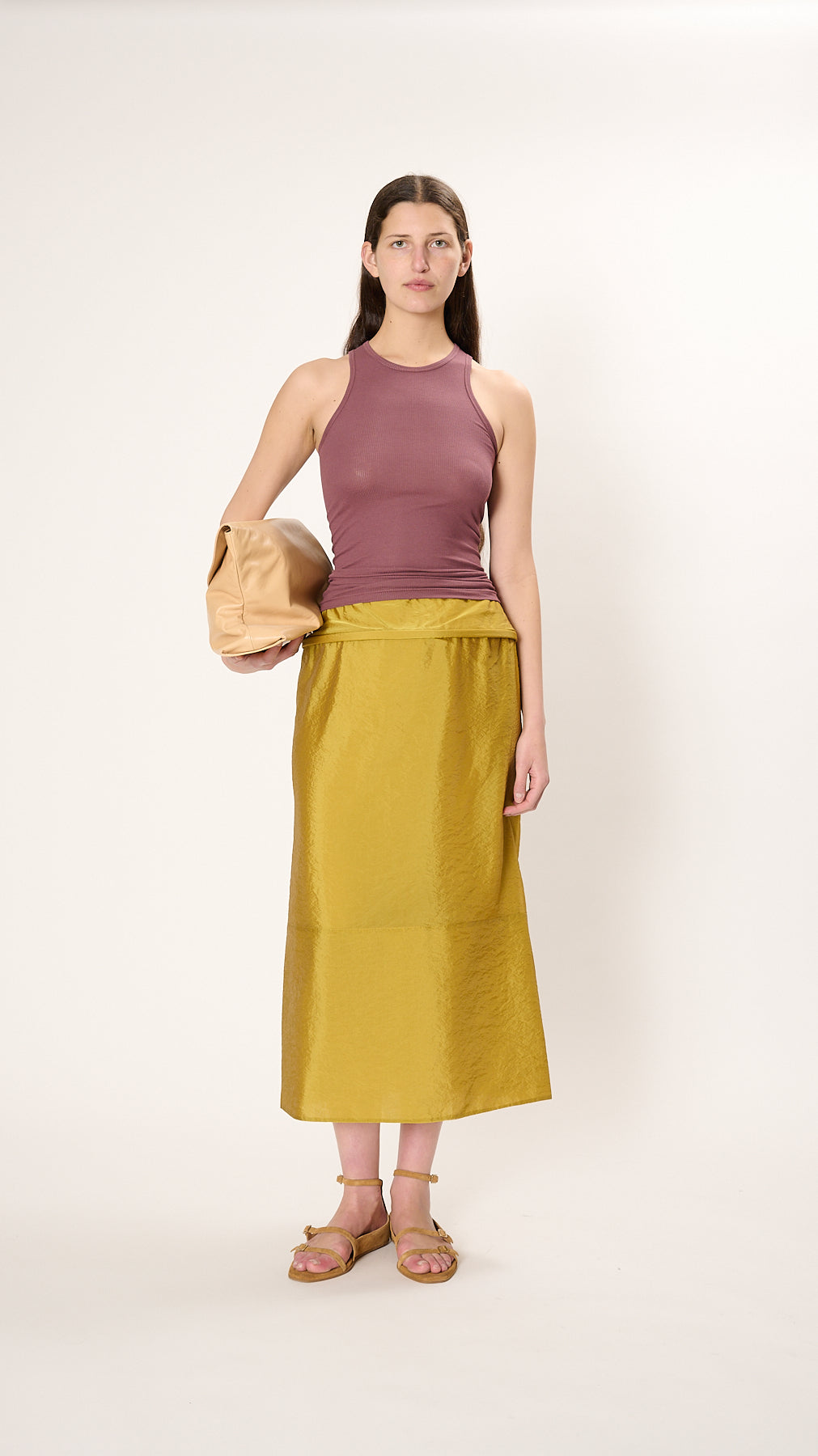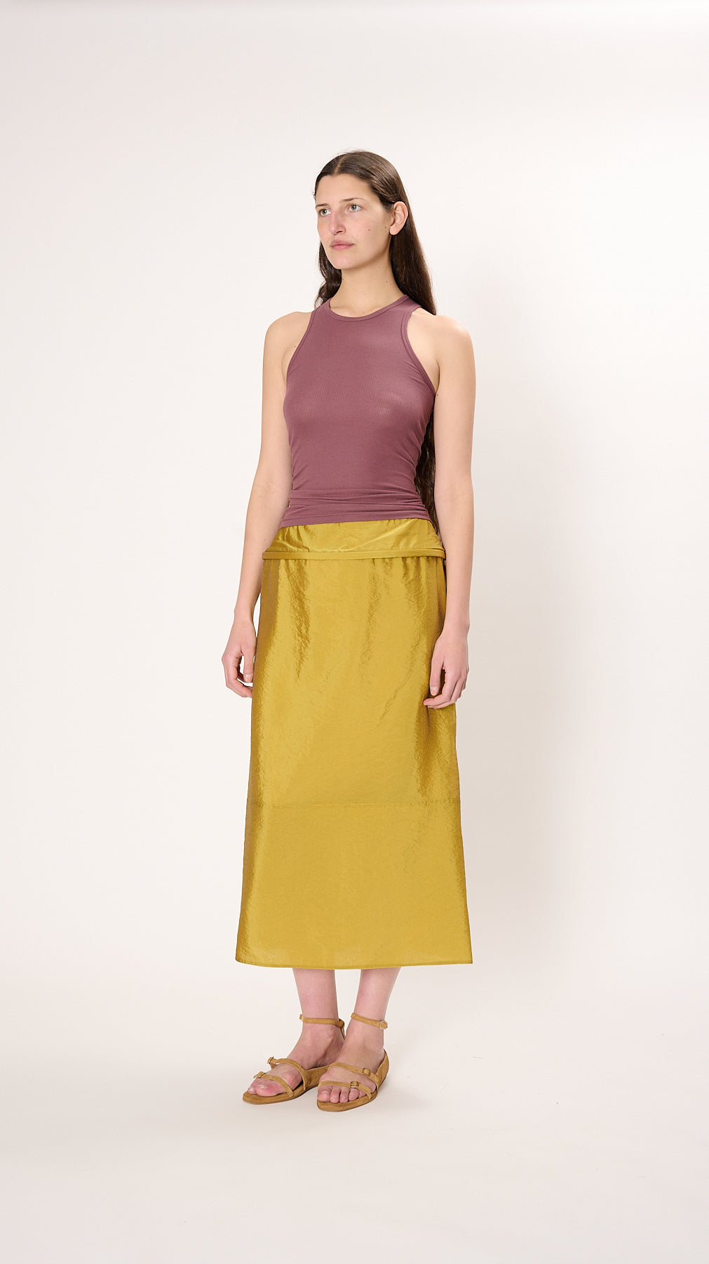The Circular Fine Rib T Tank has a fitted silhouette made from a 2x1 Peruvian cotton. A classic layer piece and wardrobe staple, it features a subtle scoop neck and racer back.