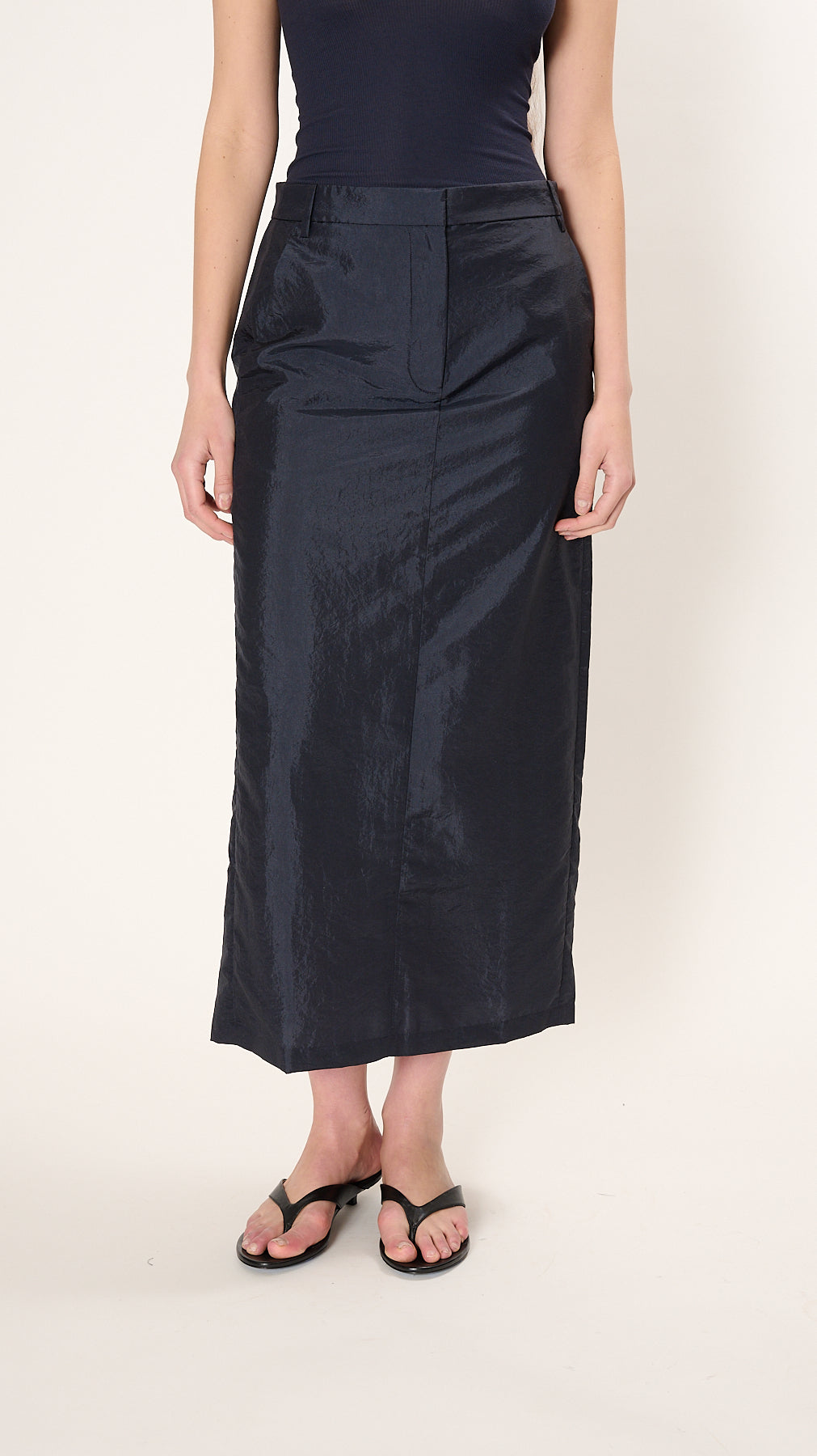 Crispy Nylon Maxi Skirt in Navy