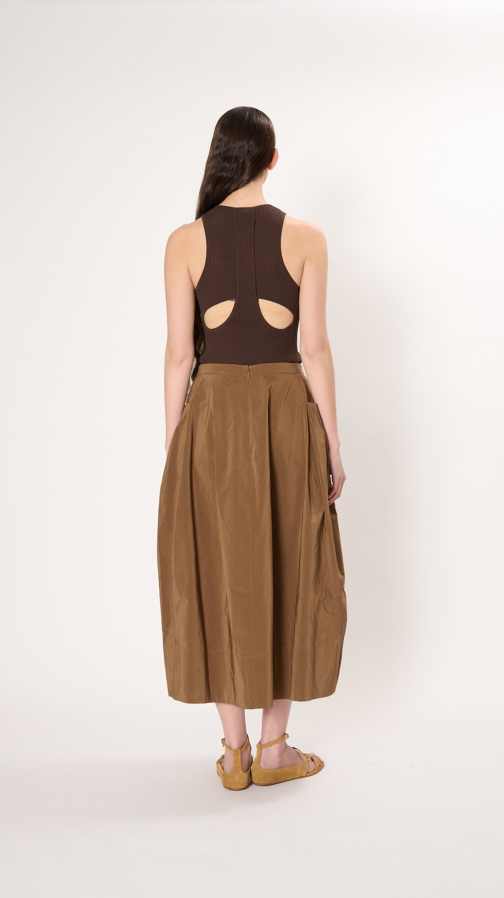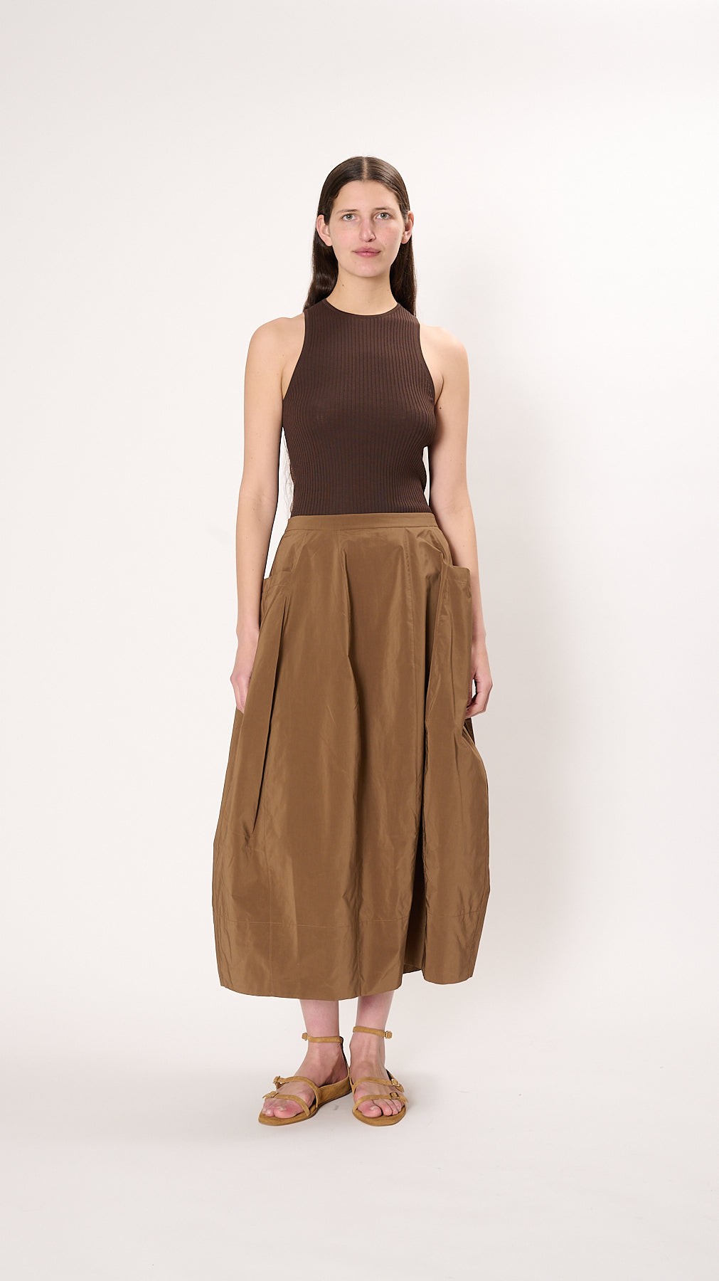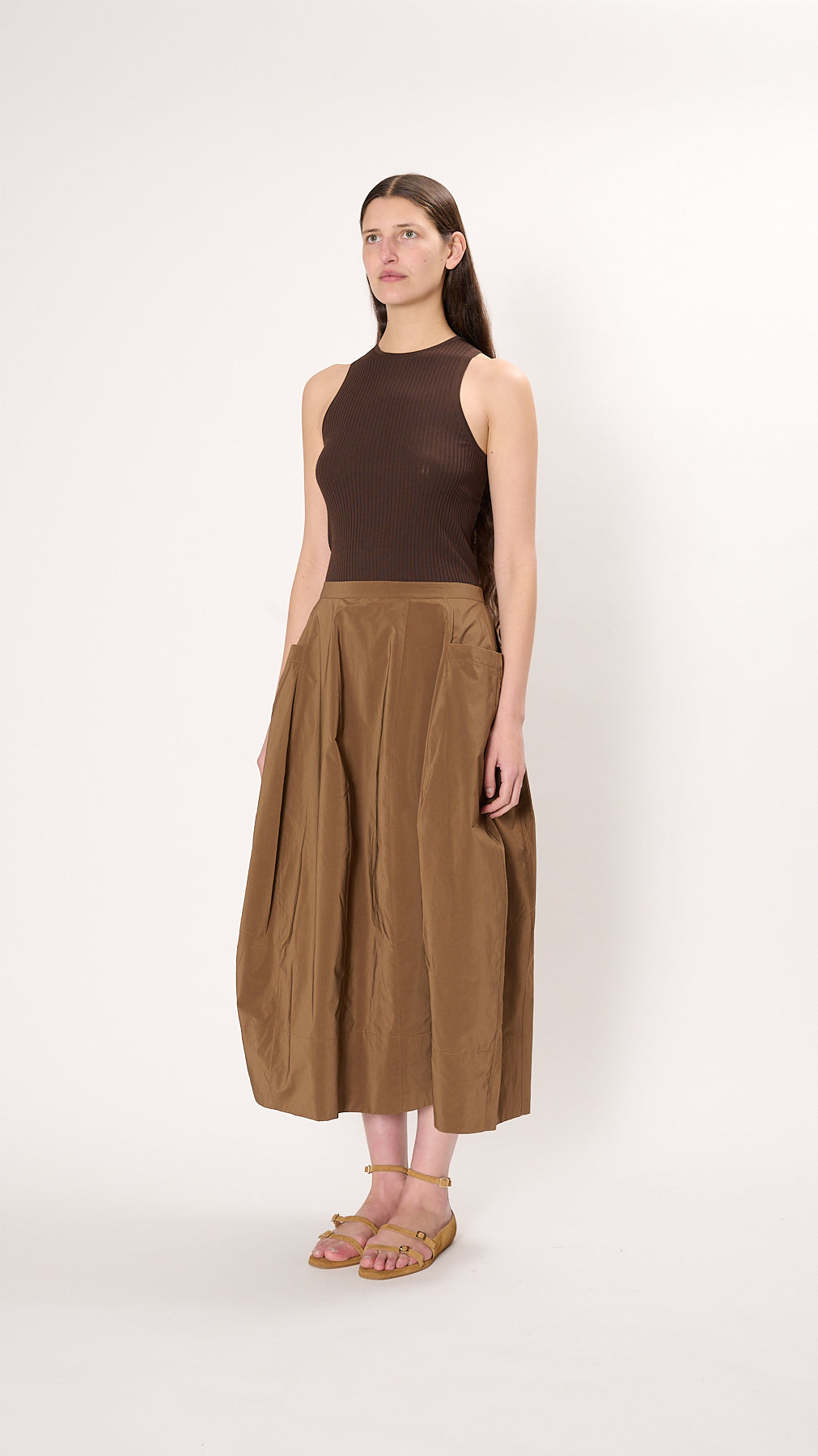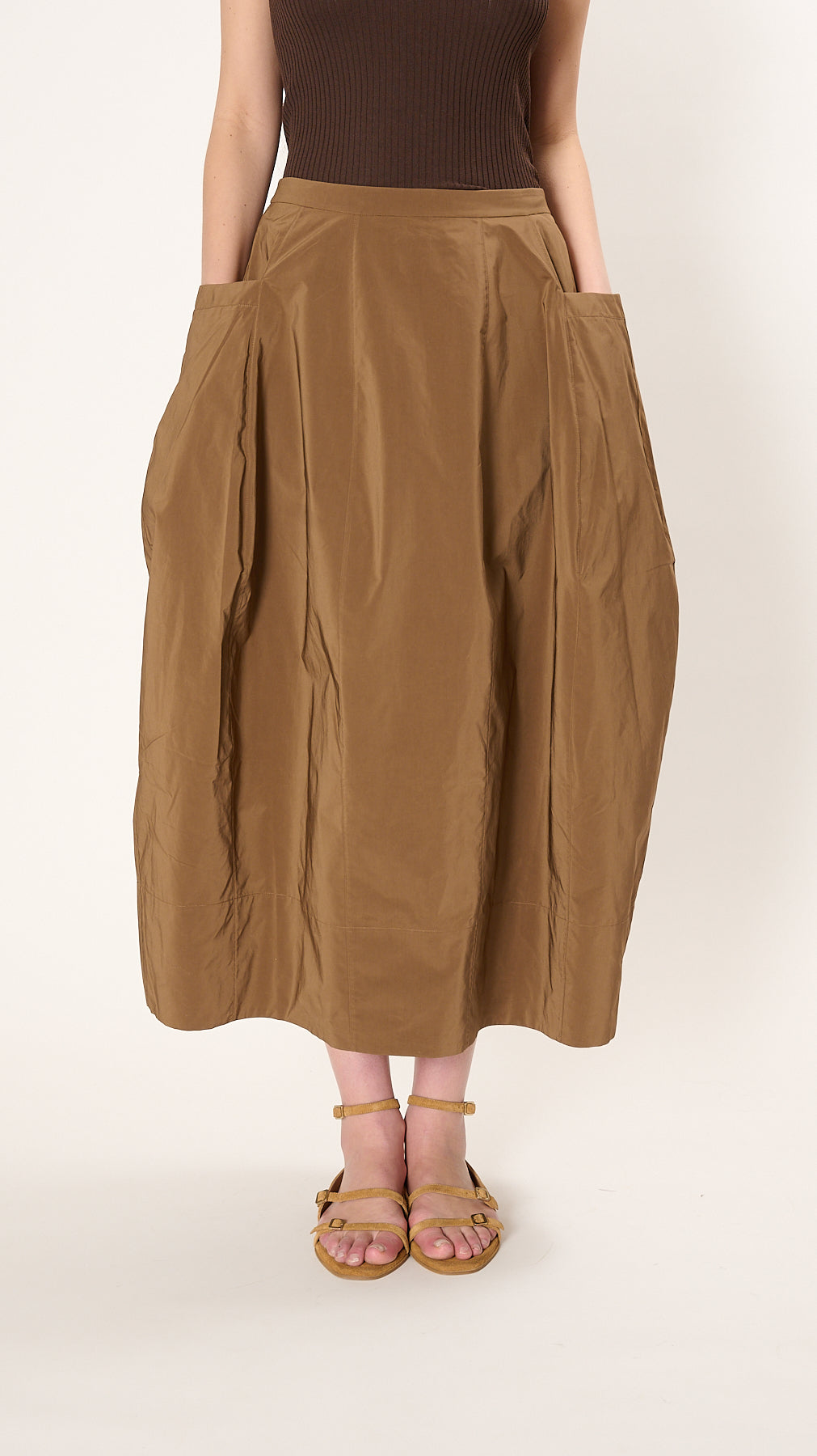 Nylon Lantern Skirt in Caramel Latte