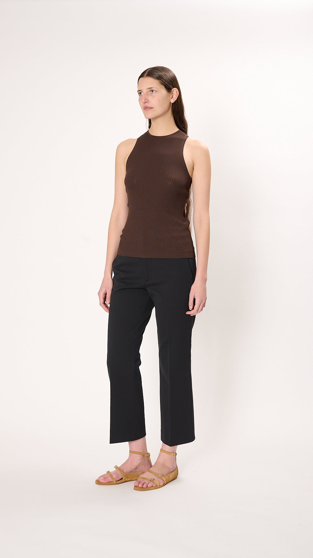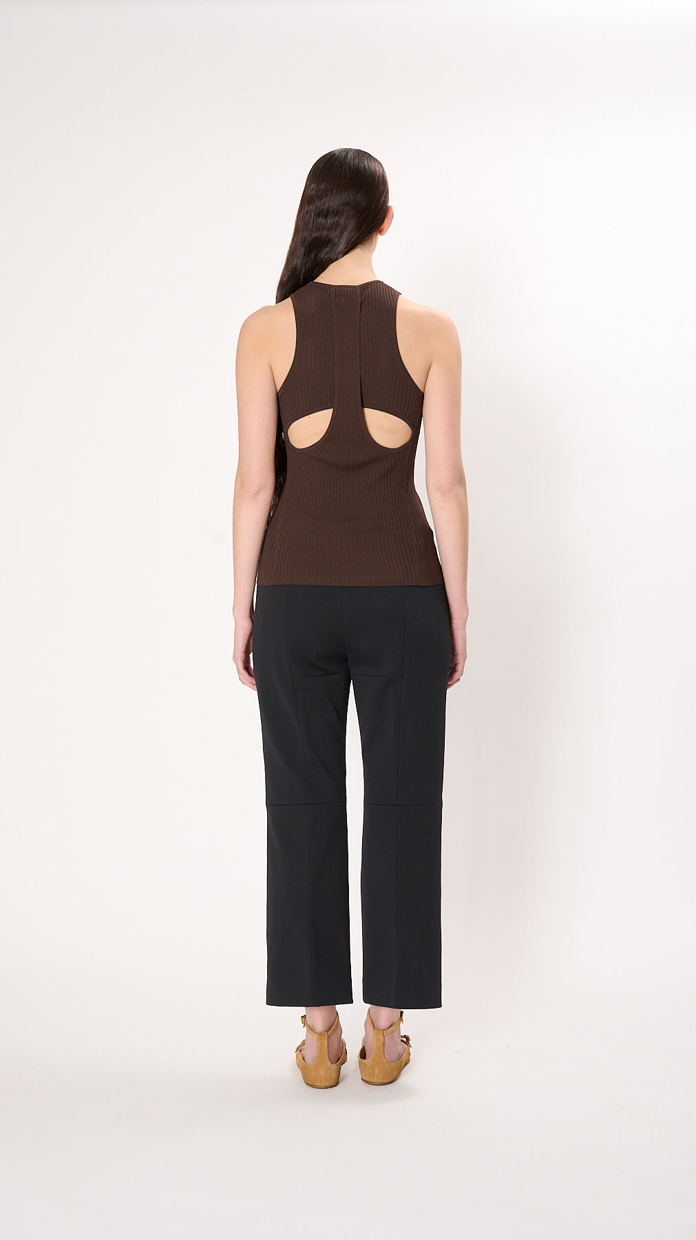 Ribbed Sweater Cutout Tank in Hickory Brown